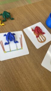単語カードの名前を答えてもらったり、文を復唱したり、お口を動かしたり…